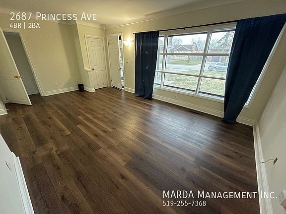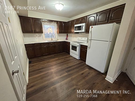 Welcome to 2687 Princess, a charming family home perfectly located in the desirable Fontainebleau area, just off Pilette Rd. With four bedrooms and two bathrooms, this home is ideal for family living, offering plenty of space and comfort. Situated near William G Davis and Roseville Public Schools, and within easy reach of shopping and amenities on Tecumseh Rd, including Giant Tiger, Shoppers Drug Mart, and Factory House, convenience is at your doorstep. Inside, youll find a bright and spacious living area with large windows that flood the space with natural light, modern vinyl flooring throughout for easy maintenance, and two functional bathrooms with shower/tub combos. The well-equipped kitchen offers plenty of cabinet and countertop space, complete with a built-in microwave, oven stovetop, and fridge. Outside, a large backyard with a mix of grass and a concrete pad provides the perfect space for relaxation or outdoor activities. The home also features ample off-street parking with a large driveway and carport. This single-level home offers the convenience of easy upkeep and accessibility, with no basement to worry about. Tenants are responsible for hydro, gas, water utilities, lawn care, and snow removal. Dont miss out on this fantastic rental opportunity! Central Ac Central Air Driveway Fenced Back Yard Front Porch In Suite Laundry In Suite Laundry Laminate Flooring Laundry On Site Parking Pets Allowed Washer/Dryer In Unit