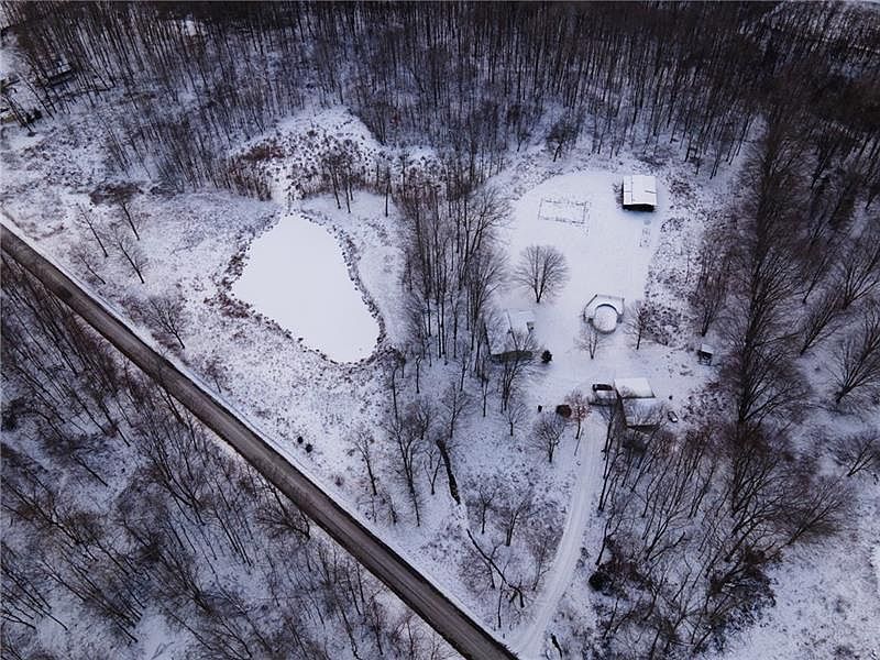 Private oasis on 11.32 acres that overlooks your own small pond that abounds with wildlife! Nature at it's very best! Peaceful setting, serene atmosphere, just a short drive from I-80, 1 hr from Cranberry Twp. Perfect weekend getaway retreat, hunting cabin or year round living! The 2 BD, 1 BA stick built country abode has a stunning interior with unique features built from the property itself. From the moment you enter the house, you will be amazed at the quality craftsmanship. Custom built cabinetry & backsplash with concrete countertops and stainless appliances in the 20x12 eat in kitchen. Bamboo flooring in the living room with soaring ceilings made from knotty pine. Spacious full bath with shower with porcelain surround and laundry area. There is a 24x24 detached garage for the cars, a 12x16 shed with loft, & chicken coop. The barn in the back could be restored for horses. New roof, siding and windows! Wood burning stove. Apple & peach trees. Life is better at the cabin!