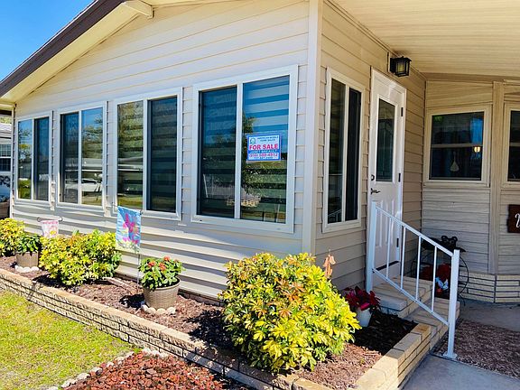 This home is in a senior park with leased land with a monthly lot rent of $515.16. This fully furnished 2 bedroom 2 bath turnkey doublewide is in a highly sought after senior park. New 3 Ton A/C in April 2018. New roof over in March 2017. Beautiful 10x20 front addition added in Jan, 2016. New thermal pane windows in February 2015. Double doors into your screened lanai. Double doors into the large shed with secret storage. Wood parquet flooring in kitchen, dining and hallway. Nice bay window in the kitchen plus a pantry. Formal dinning room. Ceramic tile in both bathrooms. Huge walk in closet in Master bedroom. There is lots of storage in this home. The home is in a very desirable senior park with a golf course and lake, offering many amenities. This GEM will not last long so call now. All listing information is deemed reliable but not guaranteed and should be independently verified through personal inspection by appropriate professionals. American Mobile Home Sales of Tampa Bay Inc. cannot guarantee or warrant the accuracy of this information or condition of this property. Measurements are approximate. The buyer assumes full responsibility for obtaining all current rates of lot rent, fees, or pass-on costs associated with the community, park, or home from the community/park manager. American Mobile Home Sales of Tampa Bay, Inc is not responsible for quoting of said fees.