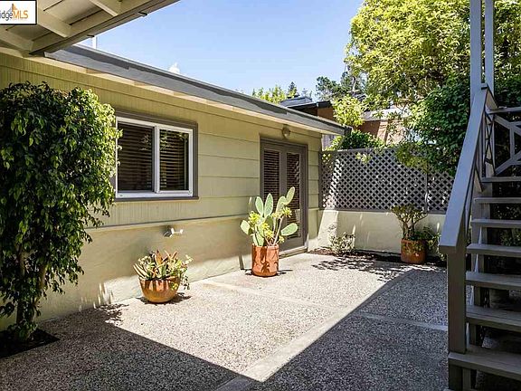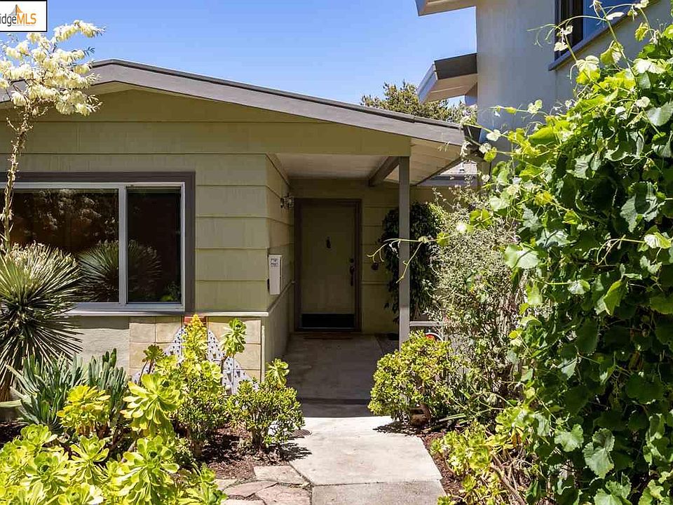 Tranquility and privacy await at this spacious Mid-Century Bay view home. Built in 1951, the indoor and outdoor connection and versatile living space exemplifies this comfortable and sun-filled home. A California native and succulent garden invites hummingbirds and butterflies to the front garden, the expansive deck off the living room allows for al fresco dining and watching the sunset. A private courtyard off the dining room is perfect for those evening BBQs. With two bedrooms, one bath upstairs, and one bedroom plus a family room and home office downstairs, and another full bath, the home functions as a complete 2-story home, or the downstairs can be available for guests or potential ADU. This home is close to the hiking and biking trails at Alvarado Park and Wildcat Canyon Regional Parks, a local grocery store, and bus to BART and San Francisco.