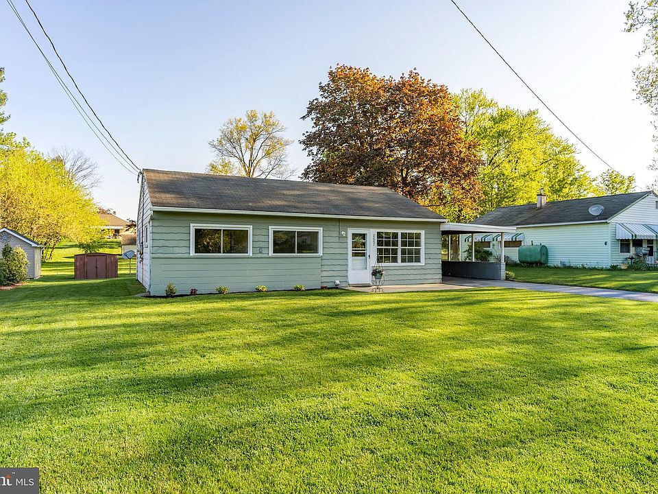 Move in ready ranch home with one floor living, fresh paint and new carpet throughout. Four bedrooms w/finished room behind carport. Covered back porch and a nice size back yard. One car attached carport. Small shed. Built in wall a/c unit in the dining room/living room combo.