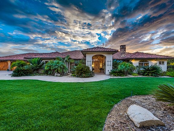 Please call Patrick Marelly at 760.473.0000. Exquisite single story estate in the wonderful hills of Fallbrook! This home features 4 substantial bedrooms with full baths, walk-in closets and separate entrances. Bonus Media Room with fireplace and Surround Sound. Enjoy your stunning views from the salt water pool made of a rich Gem Stone Black Bottom finish and a custom designed spa. Garage contains workshop and additional guest room/studio space. Owned, 32 panel stand-alone solar system. Fully fenced, 2 acre lot with a separate entrance for the lower portion of the property. Chef’s kitchen boasts Stainless Steel GE Monogram appliances, including Built-in refrigerator, Dacor range, and granite counter-tops. NAPA style garden with cedar arbors and mixture of raised beds and potted plants to create a unique garden feel. Grow your own organic produce! Next door to the award winning Fallbrook Winery.
