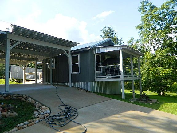 This charming cottage is turnkey and ready to be your getaway or Airbnb. As you pull up on the paved driveway, notice the beautiful hardscape that has been laid by hand. Pecan trees welcome you. A covered 12x24 pavilion (or 2 vehicle carport) awaits your outdoor entertaining desires. As you make your way further up the drive, you pull up under a large carport. To your left is a 12x24 shop with built in shelving, along with a storage shed for your lawn equipment. While on the covered front porch, you notice the constant view of the lake. Entering the door, a cathedral ceiling and exposed beams catch your eye. Custom knotty alder wood cabinets and solid wood counters make up your new kitchen. Off the bedroom is a full size shower with a seat. There is a new deck, and a covered back porch as well. This home has been built to code and is minutes from I-59