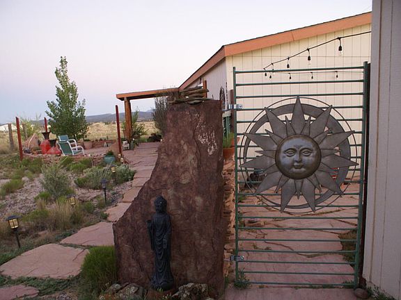 Beautifully upgraded home with extra amenities, including a fountain in the front, custom flagstone patio area. A horse set-up allows you to ride into the nearby national forest. This home boasts tile & Wood floors, wood burning fireplace and a spacious kitchen w/island. The glass window enclosed back porch makes a wonderful Arizona room and is not included in the square footage of the home. 2-car garage. Enjoy the 360 degree views. Having your water delivered is no different than having your propane delivered.
