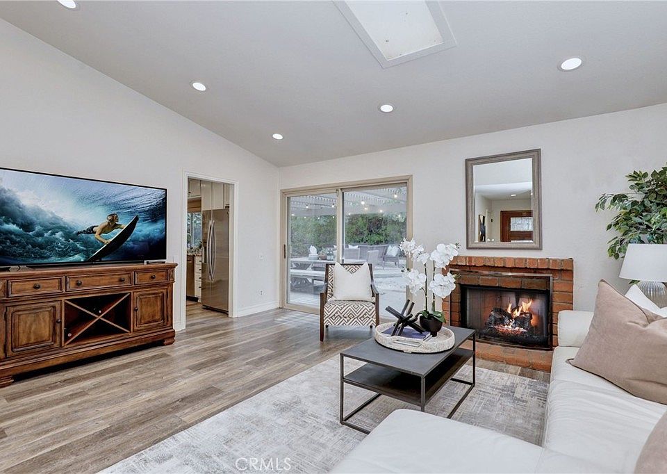 Welcome to your dream home, located on a peaceful interior lot in a highly desirable neighborhood! From the moment you arrive, the charming curb appeal grabs your attention with stylish, low-maintenance artificial turf and lush, mature landscaping. Step inside to a light-filled, open-concept living area, perfect for entertaining or cozy evenings at home. The living room features a stunning fireplace as the focal point and large sliding glass doors that bathe the space in natural light while leading out to the ultimate entertainer’s yard. The heart of the home, the family room and kitchen, is bright, spacious, and ideal for daily living. The updated kitchen boasts resurfaced cabinetry, sleek granite countertops, and modern appliances, including a new dishwasher. With plenty of space for a kitchen island with bar seating and a picturesque window overlooking the backyard, this kitchen is sure to inspire culinary creativity. The adjoining family room is inviting and spacious (currently utilized as a dining area), offering direct access to both the garage and the side yard, making it easy to enjoy indoor-outdoor living. On the opposite side of the home, you’ll find three generously sized bedrooms and two beautifully updated bathrooms, each featuring granite vanities, new lighting, hardware, and fixtures. Additional upgrades throughout the home include a 2023 whole-house re-pipe, upgraded windows, beautiful laminate flooring throughout, scraped ceilings, ceiling fans, and raised panel doors. The backyard is an entertainer's paradise, complete with an aluminum patio cover, hardscape, gas fire pit, and more professionally installed artificial turf. The two-car garage is equally impressive with a finished floor, built-in cabinetry, a replaced garage door, and an upgraded opener. This home truly has it all—move-in ready with modern updates, access to Lake Mission Viejo, top-rated schools, excellent shopping and dining, and easy commuting options. Don’t miss your chance to own this incredible home on a beautiful street in a vibrant community. This is the one!