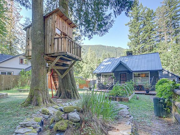You will find efficiency and comfort in this cozy cabin with so many upgrades. Mini split ductless heating and cooling, pellet stove fireplace insert, on demand tankless hot water heaters, double pane storm windows, recent cascade no clog, heavy support gutters 100% guaranteed, and home is wired for backup generator. Garage has laundry hook up for W/D and overhead storage. Kitchen microwave is also convection oven. Floors and surfaces are refurbished with lovely touches in original features, such as the wooden window frames and tiffany light covers still intact. Custom window shades showcase the living room windows and allow for adjustment up or down for daylighting and privacy. Metal roofs on house and garage are 2 years old. 30 year roll out roofing on upper bath, back porch and over hot tub are 2 years old. Check out the extended outdoor living areas too. Kick back and relax on the front deck near the garden and tree house. In back you will find a fire pit, covered deck and hot tub that stays with this fun property. Skiing, soaking, sitting, or just reflecting; there is a zone here for all, whatever the season. Yep, a cutie cabin in Rhody just minutes from all the mountain has to offer. Prime location and super access with proximity to all amenities and surrounded by the best of nature for activities in this Pacific wonderland. Full time residence, second home or short time rental.