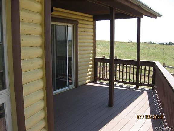 Beautiful Ranch Style Log Home perfectly placed with spectacular Pikes Peak Views!! Vaulted great room with a full wall of windows. Rustic log cabin feel. Wrap around deck with panoramic views! 3 bedroom, 2 bath home with a wood burning fireplace. Unfinished walk out basement. Walk in closets. Property has 3 storage sheds. Sits on 40 Acres! Lots of Privacy!