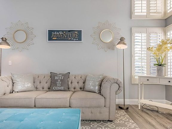 Builder MODEL END UNIT with OVERSIZED YARD AND HIGH CEILINGS!! Best location in community! Just Remodeled head to toe. New Quartz Counter tops, New European Coil-over Brushed Nickel Kitchen Faucet, New Shaker Vanities, New Faucets, New Lights, New Carpet, New 12mm Laminate flooring, New Toilets, New ceiling fan, Newly glazed tubs, plantation shutters and brand new appliances. This stunning home has Dramatic High Ceilings giving this unit an open feel. This unit has an oversized fenced yard with synthetic easy care grass. Save Money on your electric bills with LED Lighting installed throughout this home. This home will not last, and there are very few that come up with this floor-plan, all these upgrades, and this prime location selected as the Builder Model. Owner wants this sold this weekend. Don't let this special unit get away!!