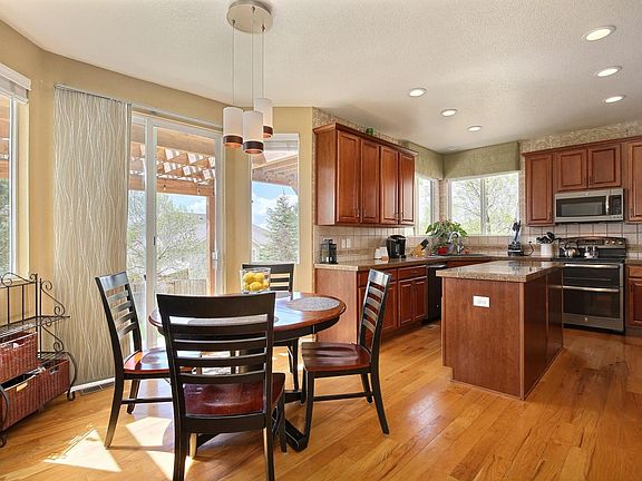Panoramic views from this former model home on a quiet cul de sac, just steps from Black Rock Elementary! This house has it all, with 3 bedrooms upstairs, a front office and an additional main floor room that can be used as a 2nd office, craft room or guest bedroom. Plenty of natural light fills the home from windows in living/dining vaulted ceiling area. Finished basement includes a wet bar and media room. Enjoy a cocktail and incredible mountain views from the newly built deck off the 2nd floor master bedroom while watching golfers tee off from the 12th hole of Colorado National golf course. Unobstructed views of the neighborhood fireworks displays and frequent hot air balloon sightings in the summer are a few more unique perks to this west facing backyard. The home is set on a lovely cul de sac with 5 other beautifully designed homes and is a simple walk to the two community pools, new King Soopers marketplace, neighborhood coffee shops and restaurants.