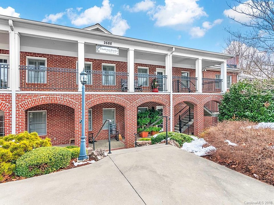 Beautifully renovated Historic Flat Rock High School Gym boasts the unique luxury condominiums of Charleston Garden at Flat Rock. Craftmanship abounds in the spacious 2BR/2BA unit featuring hardwood floors throughout, ceramic tile in bathrooms, granite countertops in kitchen & baths, 9’ ceiling heights, 14x6 personal balcony overlooks the garden, walk to all Flat Rock Village. Unit C, lower level with just a few steps down to the entrance of this unit.