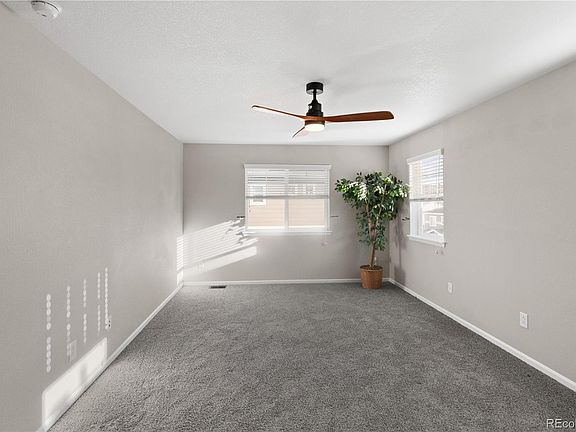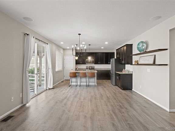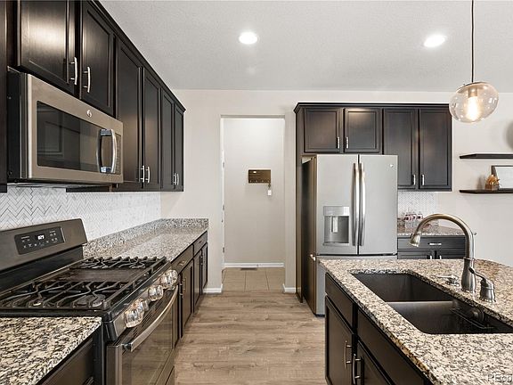 Stunning show home—move-in ready - filled with designer upgrades! This beautiful 3-bedroom + loft, 3-bath home shines with custom features, modern style, & inviting spaces throughout. Interior Highlights: • Spacious open floor plan with abundant natural light & soaring 18-foot foyer entry • Living room features elegant wood-glass built-ins, TV wall mount above the mantle, surround sound system & gorgeous electric fireplace for instant warmth & ambiance • Gourmet kitchen with all appliances, ample counter top space, pantry storage & center island with sink - opens to the dining & living area—perfect for entertaining & family gatherings • Primary suite includes a private ensuite bath, walk-in closet & stylish barn door accent • Loft area offers flexible space for a home office, reading nook, game/flex space or play area • Unfinished basement provides a blank canvas—ideal for a future home theater, recreation room, gym, or additional bedroom with a potential 4th bath Outdoor Living: • Corner lot offers extra privacy & a sense of seclusion • Pergola-covered back patio perfect for relaxing or outdoor dining • Exterior Highlights: Brand new roof. Solar system will be paid off at closing which gives INCREDIBLE Value with electrical bills between $15-30 monthly. Community & Location: • Located in a highly rated neighborhood - “A–” score on Niche.com • Close to parks/playgrounds, schools, local amenities - Pinnacle Park Recreation Center with pool, fitness center, tot splash area, miles of community of interconnected trails for hiking/biking, wildlife areas, dog park, & outdoor amphitheater • Welcoming, well-maintained Crystal Valley community with 400 acres. •This home truly has it all—modern design, thoughtful upgrades, & a location you’ll love. Don’t miss your chance to make it yours!