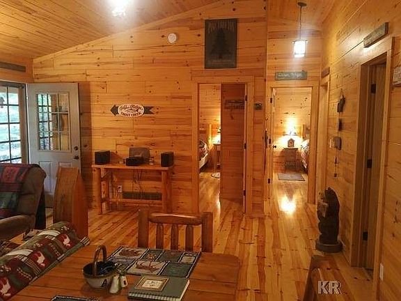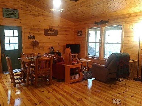 Wow! Check out this Sugar River Beauty! This stunning waterfront cottage sits on 5 acres along the beautiful Sugar River. This lovely cottage was newly built in 2008 with full knotty pine interior, real plank-wood floors, vaulted ceilings, energy efficient geothermal heating and cooling system, spacious bedrooms, 6x36 covered porch and a stunning view of the river. Sit out on the covered porch with a tall glass of ice tea and listen to the river ripple by... or grab your fishing pole and go trout fishing on the designated trout stream. This home comes fully furnished! Just bring your toothbrush and your suite case on closing day! All of this sits nestled back in the woods on 5 private wooded acres, with exclusive bridge access across the river. This scenic slice of paradise could be yours! Make your appointment today!