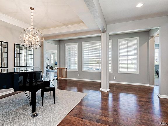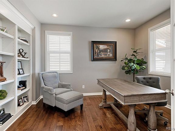 Stunning 2 story backing to open space w/ Red Hawk golf course views! Rare Zephyr model home ready to move into. Walk into the 6 bedroom 5 bathroom 2 addl offices or a craft room complete with finished basement & still more room for storage. The main floor features guest bedroom & bath separated and a main floor office w/ built ins. This open floor plan has tons of natural light throughout, open formal dining, huge gourmet kitchen, double ovens, granite counters & stainless appliance package complete w/ eat in space just off the family room. Walk out to the covered patio, sit back & enjoy the Colorado sunsets, the golf course, open space & fire pit. Upstairs find a huge open loft a master suite w/ western views along with 3 addl bedrooms complete an-suite & jack & Jill bath. The laundry room is conveniently located upstairs. Head down the the finished basement to a great room, bedroom, addl bath & a 2nd office/craft room. Working from home or just needing additional space, room to roam & your own piece of heaven this home offers it all.