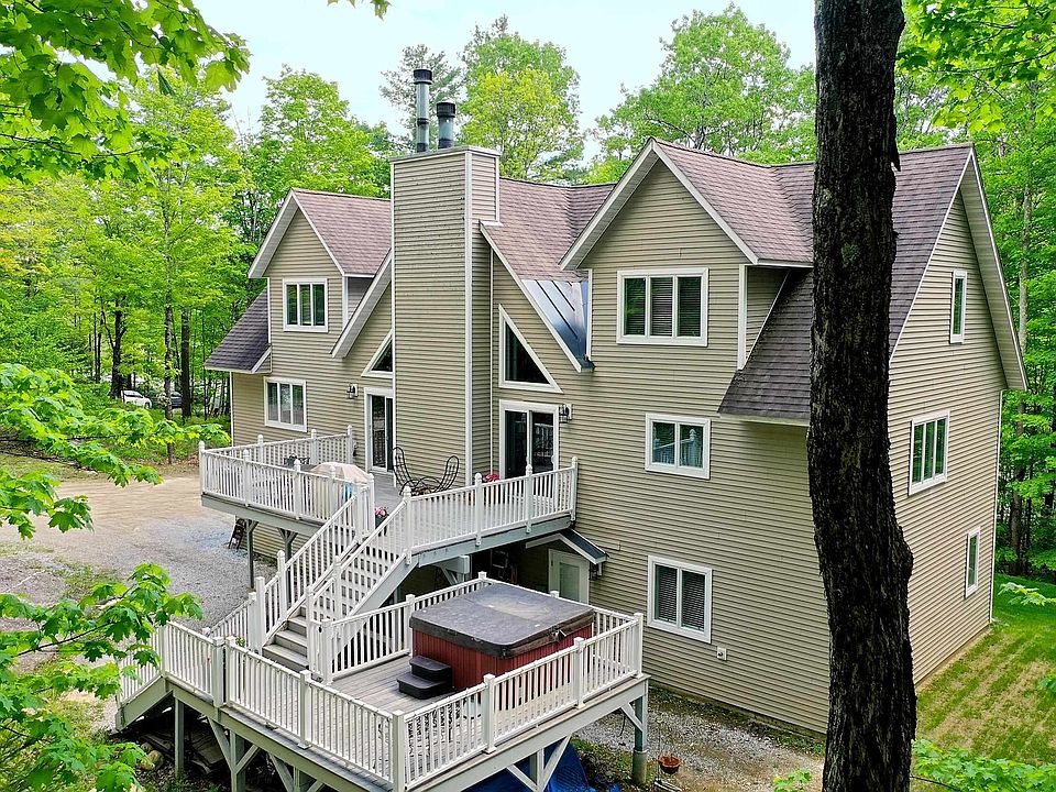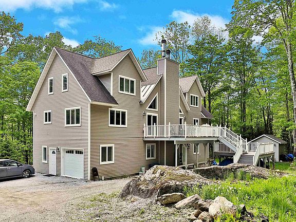 Prime Killington Location! Situated across the street from beautiful Green Mountain National Golf Course and a few minutes to the Killington Access Road for world class skiing and mountain biking. Come tour this custom built 4 bedroom/ 4 bath (2 of which are ensuite bedrooms) multi level, open concept contemporary. Awesome property for short term rental investment or primary home. Enjoy three levels of spacious living, perfect for entertaining family and friends. The main level (open kitchen with pantry/dining area/great room/ primary bedroom suite) has soaring cathedral ceilings with loads of glass and a handsome floor to ceiling fieldstone wood burning fireplace. The upper level has another spacious living room with gorgeous vaulted ceiling, 3 bedrooms, and full bath with soaking tub. The lower level could be an in-law suite or great rental apartment with separate entrance, cozy living room with wood burning fireplace, ensuite bedroom, kitchen/ laundry room, and a half bath. Kick back after a long day of play on the decks or in the outdoor hot tub. State of the art mechanicals and attached one car garage. This property has a wonderful spot, easy access with flat driveway, and would be a sweet investment for short term rental. Check this property out today to appreciate all it offers in the heart of Killington and the Green Mountains.