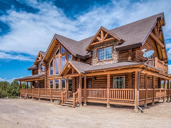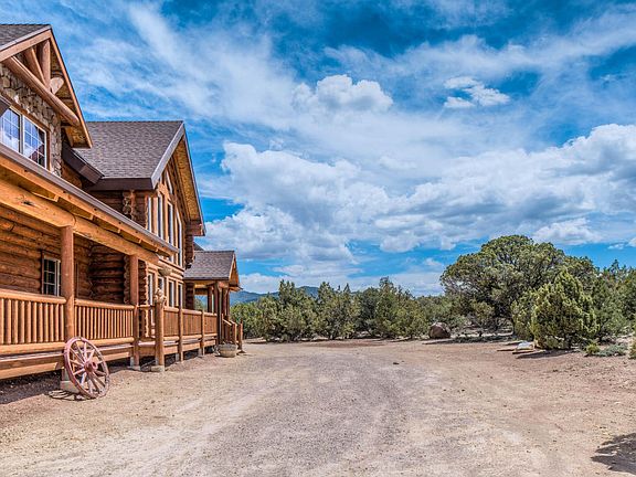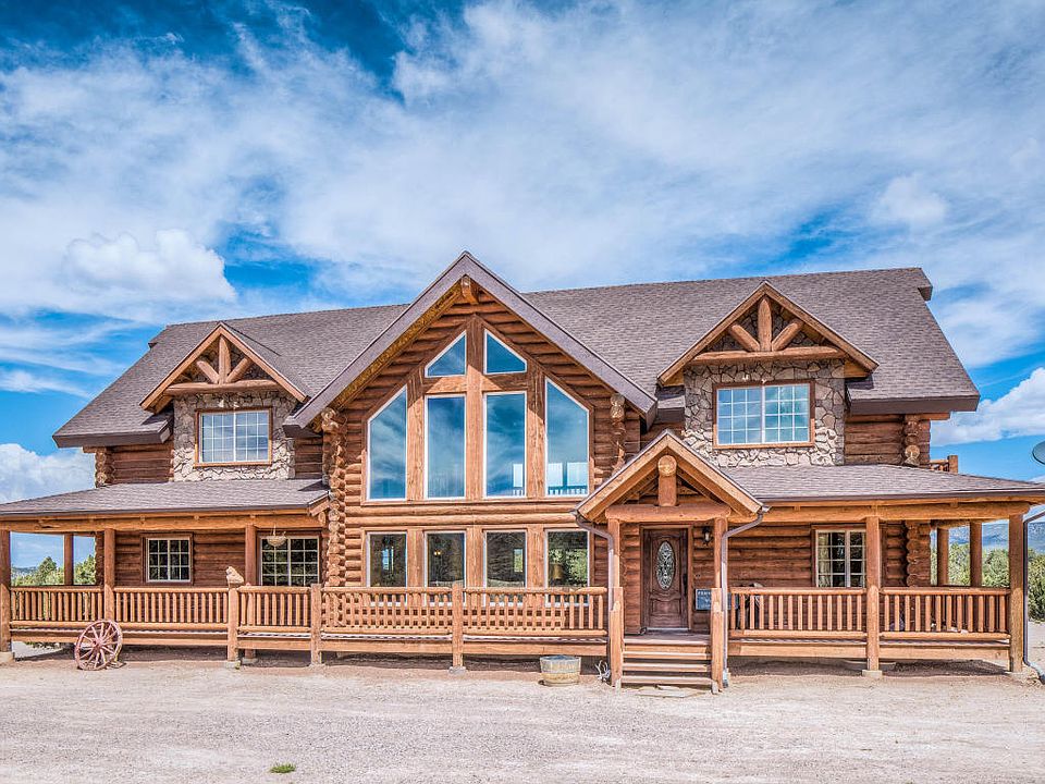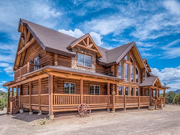 NOW ACCEPTING BACK UP OFFERS! Go Green! Complete energy independence on self supporting country estate only 20 min from downtown Cedar City. Custom build log home with 42' ceiling, 2nd level loft, & floor to ceiling windows in great room. Rustic elegance & comfort with stone fireplace w/heating insert, granite counters, stainless appliances & jetted master tub. Wildlife sightings & 360 degree Mtn views from all windows, balconies and wrap around decks. Backs up to BLM land offering thousands of acres of horse trails, ATV, hunting & other recreation. Fishing/boating 10 min. away. Exterior features: round pen, large corral, solar array w/dedicated equip. shed, new battery bank & generator; trap shooting, storage shed, approx 1300 s.f. workshop, w/electric, plumbing and septic, or use for RV parking. Horse/animal rights. Ideal horse property. New forced-air propane heater, on-demand water heater and more! Too many features to list, must see to appreciate!