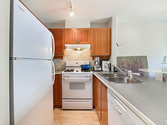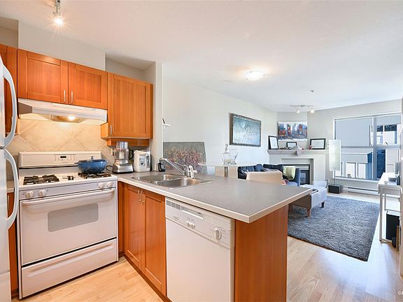 The Treo at Arbutus Walk. This top floor, 1 bedroom and flex room unit is east facing and soaked in delightful morning sun. Great layout with an open kitchen, gas range, in-suite laundry and balcony. Beautiful hardwood floors, wool carpet in the bedroom and a gas fireplace compliment this cozy suite. Enjoy the recreation facilities that feature a lounge and a fitness area or take advantage of being across from Connaught Park, Shopping & Transit. This unit is a must see, call for your private viewing today!