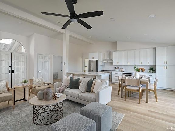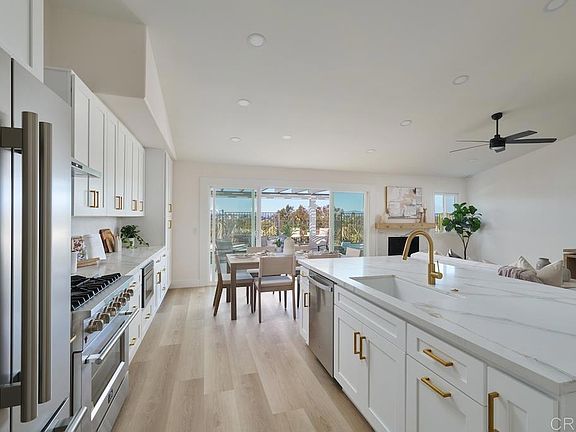 Nestled on a spacious 8,520 est.sq.ft. lot in a serene cul-de-sac, this stunning single-level Carlsbad home offers the perfect blend of modern luxury and coastal charm. Boasting 4 bedrooms, 3 baths, and 1,863 est. sq. ft. of fully remodeled living space, this move-in ready property is designed to impress. The open floor plan features vaulted ceilings and luxury vinyl wide plank flooring, creating a light and bright atmosphere enhanced by all-new energy-efficient dual-pane windows. The heart of the home is the beautifully upgraded kitchen, complete with Quartz countertops, sleek white shaker cabinets, and an oversized island with seating—ideal for entertaining. Enjoy seamless indoor-outdoor living with large dual sliding doors that open to the private backyard, with no rear neighbors. For breathtaking sunsets and 180-degree panoramic views, head to the rooftop deck. Unique to this property are two spacious primary bedrooms, each with their own en-suite bathroom, offering flexibility for multi-generational living or guest accommodations. Additional conveniences include an interior full-size laundry room with storage, upgraded HVAC system with a new furnace and A/C, and a 2-car attached garage with an extra-wide driveway. This home’s prime location puts you near top-rated schools, Carlsbad Village, pristine beaches, and Hidden Canyon Park. With no Mello-Roos or HOA, this gem offers an unparalleled lifestyle close to restaurants, shops, and daily conveniences. Buyer and buyer’s agent to verify all in MLS prior to COE.