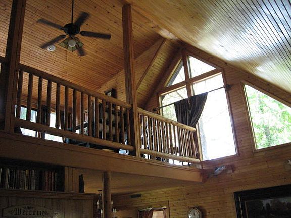 Lakefront cabin snuggled down secluded driveway is a beautifully rustic decorated 2 bd with loft 2 ba home everyone would love. Just across from Kings River marina, this jewel is expertly built with all wood walls & cabinets plus all wood railings. With the extra loft this cabin can sleep many more. Not to mention all of the gorgeous furniture, appliances, decor, cooking grills, utensils all go with the cabin including 8 pieces of matching leather furniture are included. Cabin includes office space, game room, extra storage, lawn equipment overlooking the lake. Lots of decking enclosed and/or outer overlooking lake. Just bring your toothbrush because that is all you will need.