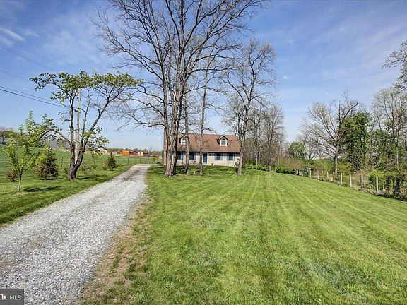 Nestled on a picturesque 1.72-acre lot with a serene stream, this charming Cape Cod-style home offers a perfect blend of comfort and functionality. The property features an open-end garage/storage building, a stable/shelter with a tack or feed room, a small ring, and a fenced pasture—ideal for equestrian enthusiasts. The main level boasts a spacious bedroom with an en-suite bath, complete with a soaking tub, separate shower, and a walk-in closet. The updated kitchen is a chef's dream, offering ample cabinet and counter space, a stainless double oven, electric cooktop, stainless refrigerator, under-cabinet lighting, and a breakfast bar. It seamlessly connects to the dining area, which has access to the deck. A convenient hallway half bath is also located on this level. Upstairs, you'll find two large bedrooms and a full bath with a tub/shower combination. The full basement includes finished space that can serve as an additional bedroom or a perfect office, and a family room with a beautiful brick wood-burning fireplace. The unfinished portion houses the laundry area and offers excellent storage space with a walk-up areaway to the outside. The recently replaced heat pump/central AC system includes an oil backup system and UV light, with supplemental electric baseboard heating available throughout the house. This charming home is a rare find, offering both modern amenities and rustic charm in a tranquil setting. Don't miss the opportunity to make it yours! East fence, constructed by a previous owner is partially encroaching on neighboring property and may need to be removed as a condition of the sale.