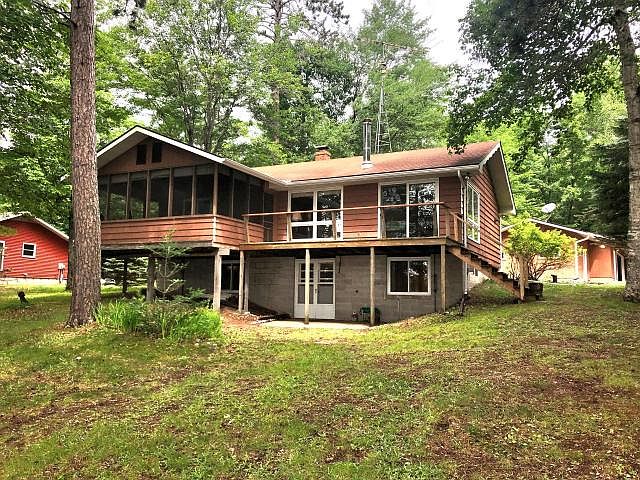 A perfect location for the hunter or nature lover looking for peace and quiet. This home is located adjacent to the national forest on a dead end road and has 130 feet of frontage on Lower Nine Mile Lake. The screened porch and attached deck give you panoramic views of the level lot and excellent fishing lake. Inside the home you will find a large open concept living room with picture windows and a sliding door to the deck and porch. The house is finished with knotty pine, and there is a wood burning stove giving you an ambiance of the north woods to enjoy. Downstairs in the walk out basement there is a large tastefully finished family room with a gas burning stove and enough space to add a bedroom. Outside you will find an over sized 2 car garage with an attached carport on one end and a workshop on the other. With everything this well maintained home has to offer it won't last long so don't hesitate to come and see it.