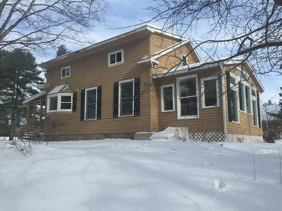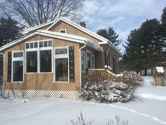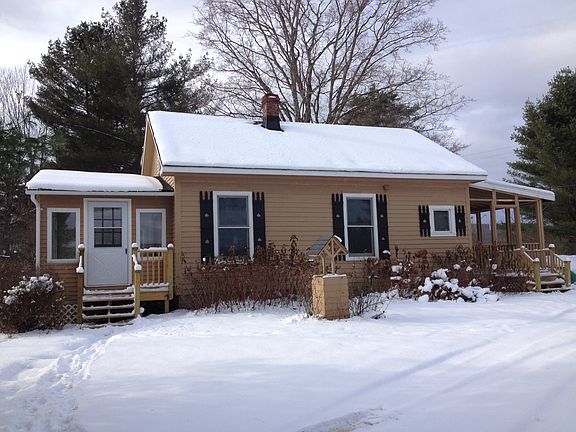 Cozy cottage like bungalow on one acre yard with garden and plenty of room to play. New front porch and storm door. Beautifully restored butcher-block counter tops and cabinets. Some fresh paint and updated flooring. Large heated sunroom with southern exposure and French doors leading to living and dining area. Back covered porch 18X10 ready to be screened in. Two bedrooms upstairs with new windows and low ceilings. Open balcony to living room. First floor full bath with laundry and all appliances less than 10 years old. Roof replaced in 2012. Large 29X18 detached garage. Only 2 miles to Green River reservoir for fishing, canoeing and kayaking. Only 4 miles to the center of Morrisville and all of the amenities as well as central to Smuggs, Jay Peak and Stowe. Motivated Seller!