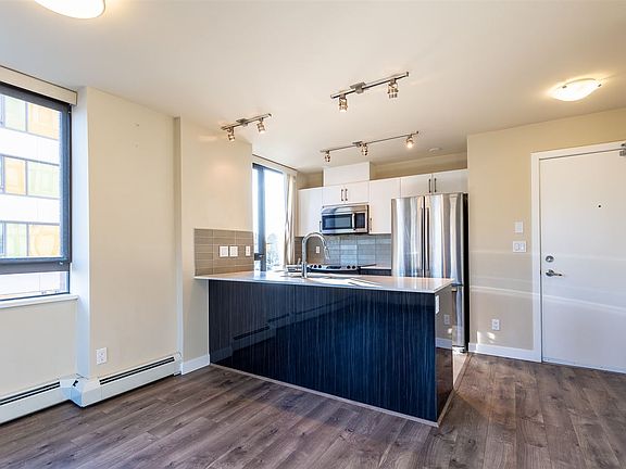Welcome to Skyway Tower - Come home to the most coveted building in East Vancouver! Attention all investors and buyers, do not miss this rarely available 2 bedroom corner suite, situated on the quiet side. featuring a European layout, this super bright and open floor plan features no wasted space. This 812 SQF 2 bed suite features: stainless steel appliances, stone counter tops, radiant hot water (inclusive in strata fees). Unit is complete with 1 parking stall and additionally, the building is pet/rental friendly. Rooftop garden for all residents to enjoy. Buliding is also covered under 2-5-10 warranty. Building is impeccably located all of East Van amenities: schools, community centres, parks, restaurants, libraries, and Norquay Park closely. OPEN SUN SEPTEMBER 13, 2-4pm.