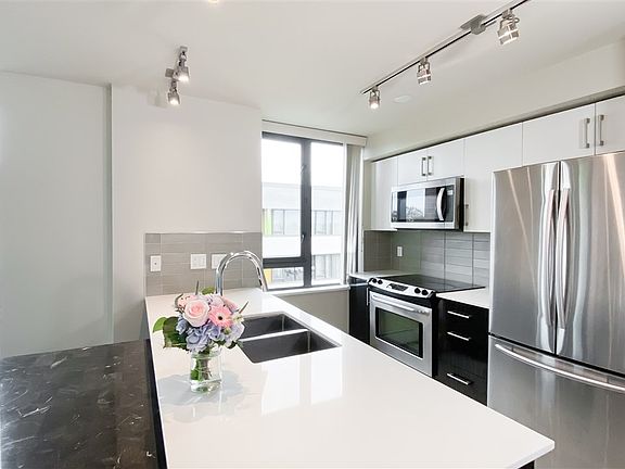 Great Location, Concrete Tower. This unit is on the quiet side of the building with a nice view. 2 bed & 2 bath suite located in the heart of Vancouver. Bright and higher floor unit with functional floor plan. Features: hot water heat, s/s appliances, engineered hardwood floors, quartz countertops and in-suite laundry. Walking distance to 29th Avenue skytrain, multiple bus routes & Norquay park is just across the road from the building. Offers (if any) will be presented at 8 pm on (Tue) October 13th.