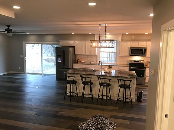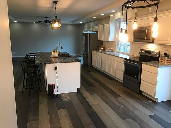 Nothing to do but hang the TV! Here is a completely remodeled 3 bedroom, 3 full bath ranch that is beautiful from the road to the inside. This home has an unique front canopy roof and pretty stamped porch that leads to the front door. Open the door to breathtaking open floorplan. The home has a striking foyer that opens to a gorgeous great room, exposing an oversized qranite inland with a stainless steel farmer's sink. All new stainless steel appliances enhance the cook's dream in preparing meals and entertaining. The flooring is bamboo hardwood which creates warm undertones. The great room has unique light fixtures over island and dining area. The great room has its distinct areas, on one side is a brick wall with the wood burning fireplace, on the other side is a roomy dining area with the spacious island in the center. There are 2 sets of oversized slider doors that allow natural lighting and a view of the country setting. There are 3 bedrooms, with the master bedroom suite having its own bathroom and walk in closet with laundry hookup. An oversized mud room is next to the garage with a full bathroom and utility sink for convenience while working outside. The home has a nice patio to sit and enjoy the acre yard. This home has been completely remodeled, all mechanicals heat pump, central air unit, tankless water heater, electrical, plumbing, ductwork, central vac system including a vac pan on each end of island, prewired for direct connection to internet, stamped and stained concrete, metal roof and guttering. A Brick beauty ready to move in.