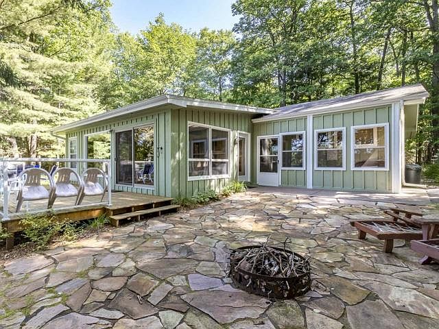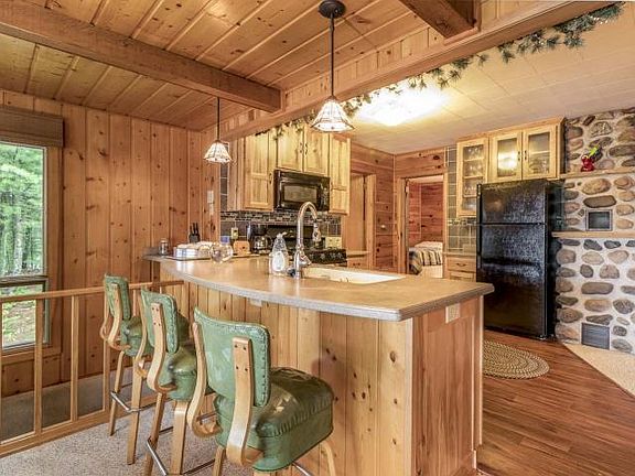 Beautiful Little Spider Lake home can be your private refuge. Nestled in a picturesque 1.47 acre wooded setting w/100' of sandy frtg, remodeled residence provide all the modern comforts while maintaining it's striking original character. Spacious 4-season sunroom boasts large picture windows & sliding glass doors for gorgeous lakeviews & stunning sunsets. Massive natural stone fireplace in family room will warm those chilly nights. Patina'd knotty pine walls & ceilings & built in cabinets throughout. Lge master bedroom has a private bath. Two add'l bedrooms, 2nd full bath & updated open concept kitchen w/breakfast bar provide room for everyone. Enjoy coffee in the screened porch, firepit gatherings on the flagstone courtyard, & libations on 26'x12' deck w/glass panels for unobstructed views of lake - awesome! Add'l amenities include: blacktop drive, drive-thru 2 car gar, landings/seating areas by lake, pier, perrenial landscaping, & most furnishings included! Turn-key & move-in ready!