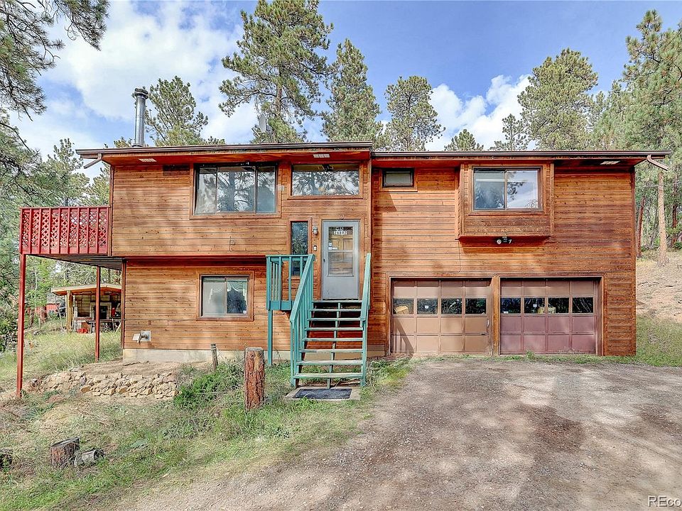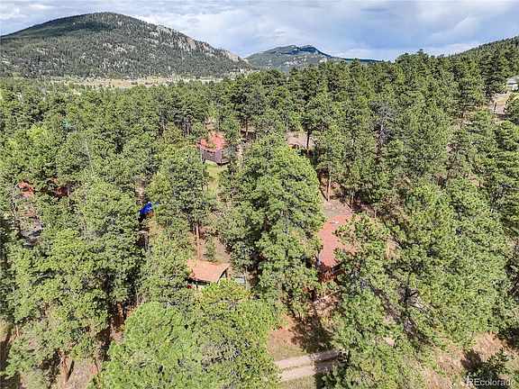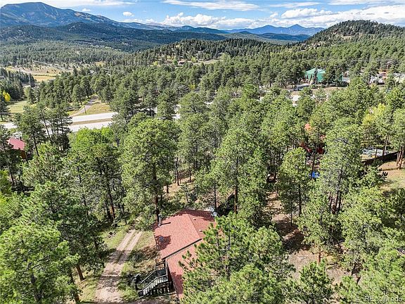 Convenient mountain living with fantastic views! This 1.4 acre cul-de-sac property features peaceful privacy & a large, wooded meadow filled with pines & aspens. Fantastic, covered patio pavilion is perfect for hosting barbeques with family & friends (& also a great spot for a hot tub!). Vaulted ceilings on the main floor with ample windows make this open floor plan light & bright. The wood beamed ceilings & Australian hard wood floors in the family & dining room are beautiful & inviting. The spacious family room showcases a beautiful, tiled nook with cozy wood stove & mantel. The adjacent kitchen is well configured & opens onto the dining room for easy living & entertaining. The sliding doors lead to a large BRAND NEW DECK showcasing amazing mountain views & is perfect for enjoying quiet morning coffee & evening cocktails. The primary bedroom suite is conveniently located on the main level & offers a ensuite bathroom, walk-in closet & stunning meadow views with a lovely window seat. The main level also features two bedrooms & a full bathroom with direct access to the rear bedroom. The lower level features a versatile great room space with pellet stove which could be used as a bonus room, gym, recreation area. There is also a flexible den area (or non-conforming possible bedroom), bathroom & generous laundry room. The lower level offers direct access to the oversized 2 car garage with separate heated work/craft room complete with sink. Septic allows for 3 bedrooms (6 people) & has been inspected, pumped & permitted. Enjoy peaceful, private mountain living with close access to 285, shopping, restaurants & schools! Top rated schools. County maintained roads & school bus route.