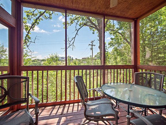 Tucked into the woods but only a few blocks from all the shopping, recreation, and entertainment of Branson and within walking distance of Highway 76. Double unit with lockout and completely turn key furnished and ready for vacation or rental investment. Enjoy grilling out on the oversized deck or sit and enjoy the sights and sounds of nature from the screened in porch or have fun in the sun at the community swimming pool. Each unit features three bedrooms and two bathrooms that combined can sleep 16 comfortably. Log cabin feel throughout including hardwood floors with rustic furniture and decor. Other features include a stone gas log fireplace, jacuzzi tub, and a walk in shower in the master bath. 2021-08-20