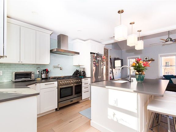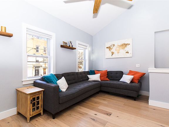 Elevate your lifestyle with this charming three-bedroom, two-and-a-half bathroom duplex condo in the heart of Downtown Jersey. As you enter, you'll find the spacious double-height living and dining rooms boasting white oak hardwood floors and plenty of space to entertain. The fabulous gourmet kitchen features a full suite of stainless steel appliances, including a six burner gas range by Verona with a sleek modern hood, a convenient retractable pot-filler, microwave, dishwasher and double-door fridge. A massive center island offers breakfast bar seating and storage. Just a step away find a deck that provides access to the yard via a Panoramic door system and own the hallway, you'll discover the master bedroom. This bright and airy space offers access to a large private balcony that overlooks the expansive backyard and provides the perfect place to relax. Also, on this level you can find a full size W/D, a walk-in closet, a full bathroom boasting a double vanity and glass-enclosed shower and finally, a half bathroom to service guests. Walk upstairs to discover two additional bedrooms. The first offers large his-and-hers closets providing plenty of storage and the second features a wall-of-windows letting sunlight flood the space. A conveniently located full bath with a luxurious soaking tub finishes out this level. All bathrooms in this home offer the luxury of heated floors. Boasting 1387 SQFT of living space, this magnificent residence is chock full of additional desirable amenities including central AC, sound proofing within the home and between the lower unit, extra storage space in the basement as well as attic storage off the kitchen. This stunning apartment also presents two skylights in the stairwell and living room and a third in the upstairs bathroom. Finally, top that off with perfectly manicured 450sf (approx) fenced-in private yard/rear patio area for entertaining. An excellent location in Harsimus Cove leaves you just a short distance to Grove Street PATH Station, Shop Rite supermarket, scenic Hamilton Park and excellent shopping and dining options.
