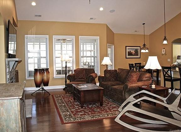 Nearly new split bdrm open concept ranch w/a gorgeous kit, glazed cabs, huge island, upgraded SS appl & pantry. Vaulted great rm w/stone surround fplc & built-ins. Formal DR & a study/liv rm/ofc w/french drs. Owner's Ste has sitting/reading area, oversized shower w/seat, dbl van, garden tub, sep water closet. Walk-in closet features custom closet system w/drawers. Laundry Rm built-ins/cabs. Huge screened porch, enormous paver patio w/fplc, private back yard. 2-car gar w/shelving. Blinds.
