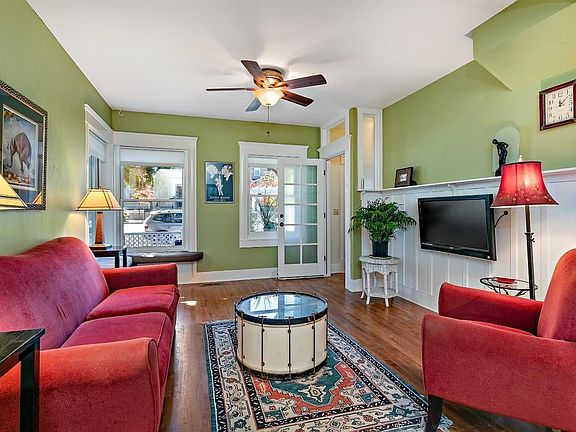 Charming Queen Anne Victorian in Ashland's Railroad District is an excellent multi-generational home, with ample living space for everyone, three semi-separate living spaces, unique exterior entrances, and two main-level bedrooms with full baths. Features include oak and bamboo floors, wainscot paneling, vintage fixtures, skylights, transom windows, pedestal sinks, and clawfoot tubs. Kitchen equipped with Jade 4-burner stainless gas range, large stainless sink, Amana stainless refrigerator, and wine refrigerator. Upstairs two-bedroom suite has full bath, kitchenette, and a balcony terrace perfect for gathering friends for cocktails while overlooking the city before heading off to a play, movie, or dinner. Outside you'll find a large covered porch and private backyard with hot tub, fountain, and mature landscaping with multiple stone and pea gravel patios. A detached light-filled studio is outfitted with recording booth, built-in desk space, and air conditioning.