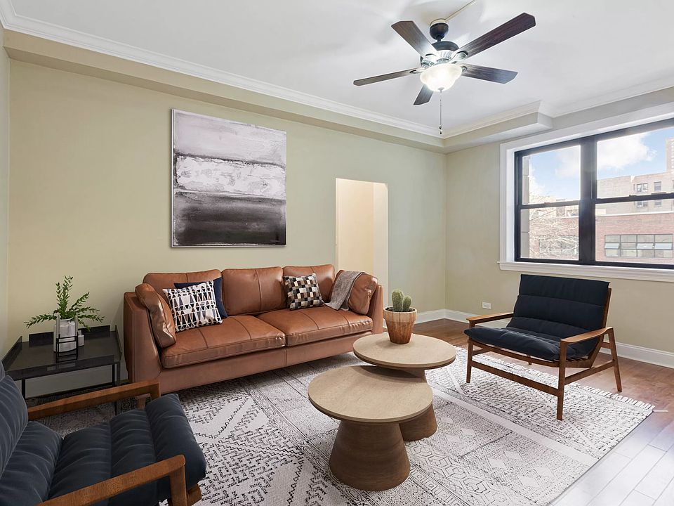 Convenience and ease-of-living define this move-in-ready one-bedroom home with lofty 9-foot ceilings. Enjoy bright morning light with eastern and northern exposures. Dabble in your well-equipped California-style kitchen with breakfast bar. Plenty of closet space will help you keep things neat and tidy. Fort Tryon Gardens is a well-managed and financially sound 7-building, 350-unit co-op perfectly situated next to beautiful Fort Tryon Park, one of New York City's most dramatic and beautiful, with breathtaking Hudson River views and the world-famous Cloisters Museum. Marvel at the beautifully landscaped grounds and courtyards of the co-op, tended by the very active garden committee. Ample proximity commerce, including supermarkets and a diverse selection of restaurants and nightspots, characterize the area. The co-op has made significant infrastructure investments in recent years, including a brand-new roof, video intercom system, and upgrades that have given the co-op an A-rating for energy efficiency. There is a current capital assessment in place through June of 2024 with $114.40 per month allocated to this apartment. Best of all, the co-op, with a resident Super and friendly staff, welcomes pets, including your canine friends, and the A-train express line is right across the street. All viewings are by appointment only. Some photos have been virtually staged.