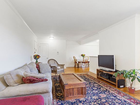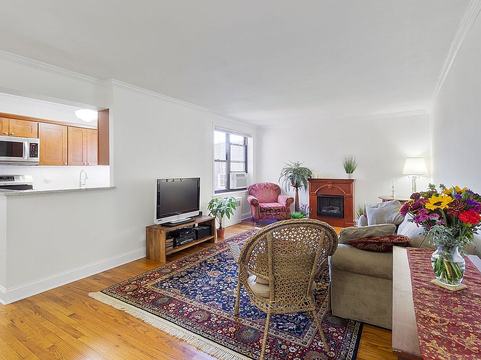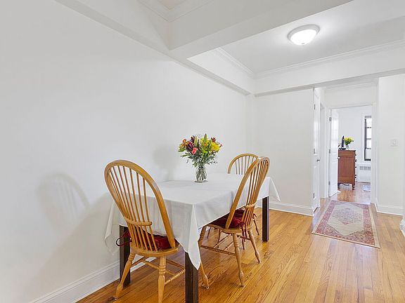 Peace, quiet and comfort define this bright and cheerful two-bedroom apartment home with low maintenance on the top floor in one of the best lines of this co-op community. Overlooking the trees and cultivated gardens of the Bennett Avenue courtyard, and the dramatic sylvan rock face of Fort Tryon Park, the space enjoys four-season enchantment that enhances your quality of life. Don’t be surprised to see a red-tailed hawk perched on the parapet. The apartment is in superb condition. The airy open concept grounded on hardwood floors makes for easy entertaining, and the flexible space of the dining alcove has enough room to accommodate an office area, if so desired. The efficient windowed kitchen features granite countertops, cherrywood cabinets and higher end, recently installed stainless steel appliances. The renovated bathroom is spotless, with elegant details. There is ample storage in the four closets. The bedrooms are serene. Fort Tryon Gardens is a well-managed and financially sound 7-building, 350-unit co-op perfectly situated next to the beautiful Fort Tryon Park, one of New York City’s most dramatic, with breathtaking Hudson River views, the exquisite Heather Garden and the world-famous Cloisters Museum. Being next to the park is like having a billionaire’s backyard. Ample nearby commerce, including supermarkets and a diverse selection of restaurants, characterize the area. The co-op has made significant infrastructure improvements in recent years, including a brand-new roof, video intercom system, and upgrades that have given the co-op an A-rating for energy efficiency. The complex has a friendly and diligent staff, with resident Superintendent. Pets are welcome, including your canine friends. The building is situated near the 1-train and, best of all, the A-train express line is right across the street. All viewings are by appointment only. The co-op allows co-purchasing and pied a terre. The Special Capital Assessment in place through June 2024 allocates $199.93 per month to this unit.