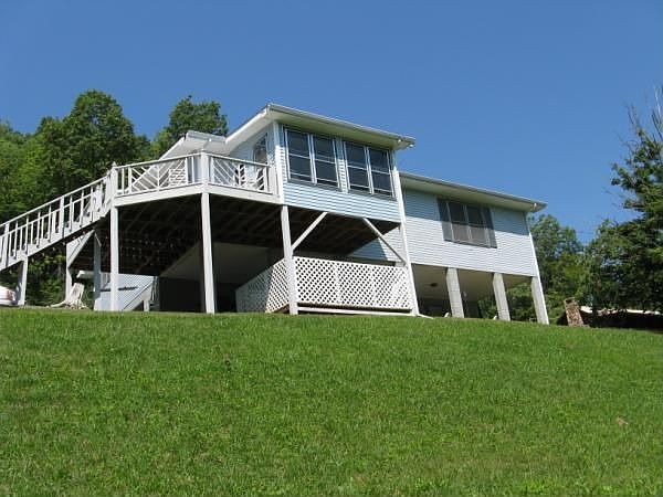 Speedwell, TN-- 269 Blue Ridge Road, 3 bedroom, 2 bath home located on 200 feet of year round water near Blue Springs Marina. Gently sloping to the lake and permitted for a dock. Home features fully finished walk out basement with kitchen, bedroom, bathroom, living room, and patio. Main level of the home has kitchen, dining room, living room, family room, storage room, sun room, storage room, deck and covered front porch.