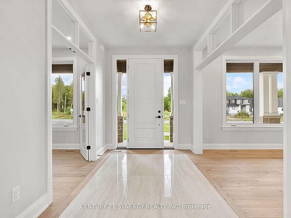 Welcome to this beautiful, brand-new custom-built home by John Gerard Homes, offering 5 bedrooms and 5 bathrooms in Manotick! Designed with modern living in mind, this open-concept layout boasts a spacious great room with a cozy gas fireplace, seamlessly connected to a beautiful large eat-in kitchen. Enjoy high-end finishes throughout, including quartz countertops, a generous island, stainless steel appliances, and a walk-in pantry. The main floor also features a formal dining room, two versatile office spaces, and a well-appointed mudroom, perfect for busy family life. Upstairs, the luxurious primary suite is a true retreat, complete with a spa-inspired 5-piece ensuite and an expansive walk-in closet that conveniently connects to the laundry room. Three additional bedrooms offer ample space - one with its own private ensuite, and the other two connected by a stylish Jack & Jill bathroom. The partially finished lower level extends the living space with a large recreation room, a den or hobby room, a 3-piece bath, and abundant storage. Direct access to the oversized three-car garage adds even more convenience to this exceptional home. A perfect blend of luxury, functionality, and timeless design!