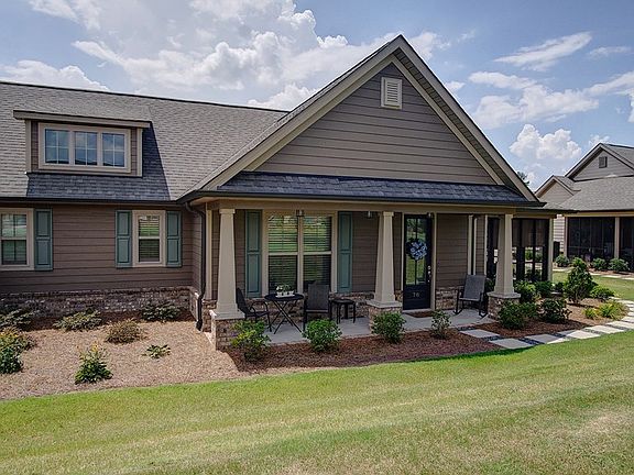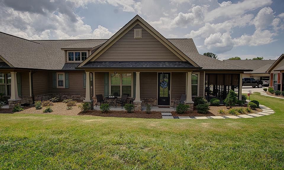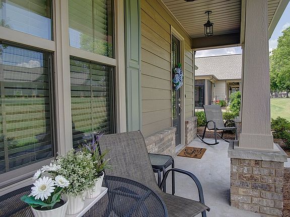 BETTER THAN NEW GARDEN-STYLE CONDOMINIUM IN ORCHARD PLACE. This lovely, Craftsman-style unit is less than 2 years young, and has been meticulously maintained and well-loved by its original owner. Guests are greeted at the front entry, which is enhanced with nostalgic, rocking-chair front porch and handsome, tapered columns with brick accents. Defined foyer leads to the generously sized living room with soaring ceilings and recessed lighting. Eat-in kitchen with dining area and breakfast bar seating for three is equipped with crisp, shaker cabinetry, stainless appliance package, large single bowl sink, and spacious storage pantry. Oversized, 2-car garage conveniently accesses the kitchen area and is connected by a charismatic, mudroom-inspired hallway. Owner's retreat with plenty of room