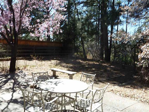 VERY DESIRABLE LOCATION ON BARRANCA MESA......LARGE .48 ACRE WOODED PERIMETER LOT. As you walk into this charming home you will see that the clerestory windows illuminate multi-pitch wood beam cathedral ceilings. There is a carpeted formal living room (now currently used as a music room) and a formal dining room with a built-in hutch. The large family room with a fireplace is open to the kitchen. The family room has views to the patios and forested land. The eat-in kitchen is quite large and has good storage and counter space. The home has 5 bedrooms - one of the bedrooms is separated from the rest and would make a good guest room or in-law quarters. There is a half bath near this bedroom and the family room. The additional 4 bedrooms are at the opposite end of the home. Two bedrooms have built-in desks and could be used as studies or bedrooms. The master is on the backside of the home and has a sliding glass door to a patio. The master bath has a walk-in shower and 2 closets. The 4th bedroom also has a sliding glass door to a patio. The home has in-floor radiant heat, laundry room, a newer roof, an interior storage alcove, an oversized 2 car garage with great storage and workbench,a large driveway, a gardening area at the back of the lot, great shade trees, and patios. QUITE THE FIND. ,