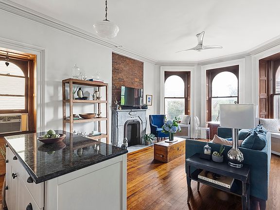 Entertain friends & family or work from home on Clinton Hill's historic mansion row. This stunning 2/1 apartment is flooded with light on three sides. Living area features triple crown moulding, marble mantel and exposed brick as well as huge arched windows with original folding shutters that frame a view of lush trees and grand mansions. The renovated kitchen is open to the living/dining area and features stainless steel appliances incl Bosch dishwasher and GE Cafe Series 5-burner gas range plus a granite-topped island. Renovated bathroom has a skylight, marble floors, custom vanity, designer lighting and Kohler fixtures. The spacious master bedroom has recessed smart-lighting, marble mantel, custom blinds and two closets. Second bedroom includes a skylight with remote-controlled blackout shade as well as custom blinds on the large window. Built in 1885, the building's wide staircases and lovingly restored details like Minton tile and handcrafted woodwork make it stand out even in this gorgeous neighborhood. The facade is stately and the front yard peaceful. The common backyard is outfitted with a stone patio, table & chairs and grill. The unit gets a dedicated bike spot and storage space in the ground-floor storage room. Laundry room includes a brand new washing machine. The co-op covers housekeeping of common areas and trash & snow removal. Just a block and a half from Citibike, the subway and multiple bus lines. This neighborhood is alive with farmers markets twice a week, playgrounds, the restaurants, bars and shops of Dekalb, Fulton, and Myrtle Avenues and magnificent Ft. Greene Park. This home is For Sale By Owner. We prefer to meet buyers directly but we are also open to meeting buyers' agents. Please send an inquiry using this site or email 269clintonave.d2 at gmail for an appointment or join our upcoming Open House.