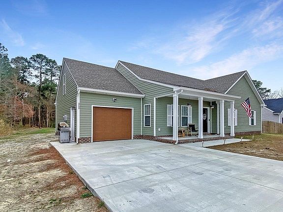 Welcome home this barely year old new construction ranch is gorgeous. Craftsman style interior trim highlights this open concept. Large kitchen with grey cabinets and stainless steel appliances with upgraded double oven , granite counters , breakfast bar and dining area. The bedrooms are oversized with a primary bedroom and ensuite featuring a double vanity and shower. Separate oversized laundry room. Waterproof flooring throughout with hardwood stairs to the FROG (finished room over garage).The FROG (14 x 16 ) is used as a bedroom but could be a great office or craft area. NO HOA NO flood ins. required. The one car garage is oversized 14 x 28 The screened in patio is an added bonus overlooking the backyard. Great location easy commute to Military bases, Elizabeth City VA or the OBX. Call to see this one today!