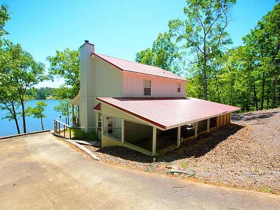 This cute lake cottage has been totally renovated and offers 3 bedrooms and 1.5 bathrooms, with the most beautiful panoramic views of the lake. You will enjoy the open concept floor plan with a large kitchen with tasteful upgrades, and a family room with a wood burning fire place. There is a half bath on the main level for your convenience. The upstairs has 3 spacious bedrooms and 1 full bath. This home has new exterior siding, LVT flooring, cabinets, granite counter tops, appliances, light fixtures and has been painted through out. Sit and relax and enjoy the lake life on the new covered deck that has awesome views of the water. It is an easy walk to 175 feet of shoreline with year round water, seawall and a floating dock. There is a boat slip with a winch system for your boat. There is room for expansion if desired. You are located near Wedowee Marine and the Town of Wedowee. This home would also make a great rental. You need to see this view of the lake from the deck.