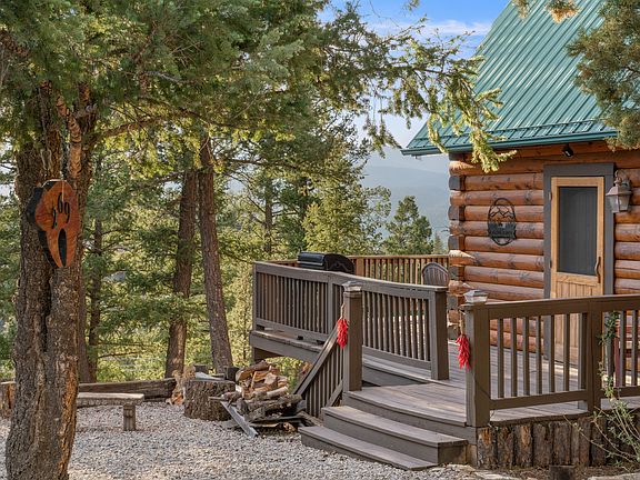 Fully furnished monthly rental available in the Camelot Subdivision. Utilities and Wifi included*. This cabin has a stunning open living room with soaring ceilings and a span of windows and doors showcasing the incredible views. Two sets of doors lead out to the main deck which was just refinished a month ago. On the deck there is a large dining table and additional seating. The grill is connected to gas and ready for your al-fresco meals. The lower deck features additional, shaded seating and is just steps down to the mountainside. There is not a fenced yard at this property. Inside, the fully-loaded kitchen has everything to help you enjoy preparing meals for one, two, or a crowd. The dining table has seating for 6 and located right off the kitchen. The kitchen/dining opens up to the living room which has a sofa-sleeper and accent chairs along with a large TV and stunning fireplace making for a cozy comfortable space to enjoy relaxing or movie night. There are two downstairs bedrooms. The first has a queen bed and TV. The second features a full-bed and TV along with fun mountain-themed decor. There are games and books available for young mountaineers. Both of these rooms have carpet. The rest of the home is hardwood floors and tile in the bathrooms. There is a washer and dryer in this home. The guest bath features a gorgeous custom log and copper sink. The tub-shower combo is helpful for those who might want to soak after a long day on the slopes. Upstairs you'll find a spacious master with a classy king-sized bed and private viewing deck. The bathroom features a lovely walk-in shower and dual sinks. This home has parking for two vehicles. A third is possible with some creativity. This home does not have AC. Small dogs (max 2) are considered on a case-by-case basis.Pet fee applies. No cats. The property is managed by the owner. Owner is a licensed NM Associate Broker. *Please inquire about the exact leasing terms. This property is being leased at a minimum of 3 months and is available up to a one year lease. Available Dec 10, 2024. The property can not be shown in person before Dec. 5, 2024. Please inquire with owner for showing availability. This is a furnished rental. Furniture I'll not be removed. Utilities are included. Wifi is through Kinetic/Windstream. Landlord does not pay for TV streaming services (netflix, HULU, etc.). Streaming services are at Tenant's own expense. Landlord will provide a one-week starter set of consumable supplies (paper towels, toilet paper, dishwasher pods etc.) Beyond that, tenant is responsible for replenishing any consumables needed including cleaning supplies. Cleaning services are not provided by landlord during the lease but can recommend a cleaning service. Small dogs (max 2) are allowed on a case-by case basis. A non-refundable pet fee of $50/month applies for each approved dog. No cats allowed. Renters insurance is not required but strongly recommended. A $250 cleaning fee applies to last month's rent.
