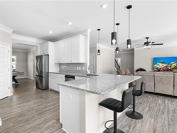 Located in the sought-after Crown Pointe at Gold Creek community, this home boasts a fabulous floorplan designed for both comfort, style and entertaining. The beautifully appointed kitchen features white cabinets, granite countertops, and a large island/peninsula with plenty of space for in-kitchen dining. Kitchen is open to family room and breakfast area with great natural light and view to backyard. A bedroom and full bath on the main level offer convenience and flexibility for guests or family. Upstairs, the oversized owner’s suite is a true retreat with double vanities, a tiled shower, and a large soaking tub. A private junior suite is tucked away on one end of the upper level(great 2nd master suite), while two additional bedrooms share a full bathroom on the other side—perfect for privacy and functionality. Step outside and prepare to fall in love with the backyard oasis! The huge, flat, fully fenced yard is freshly sodded and ready for play, pets, or entertaining. An extended patio provides the perfect space for grilling, dining, or simply relaxing outdoors. This home truly has it all—inside and out. Don’t miss the opportunity to make it yours. Schedule a showing today!