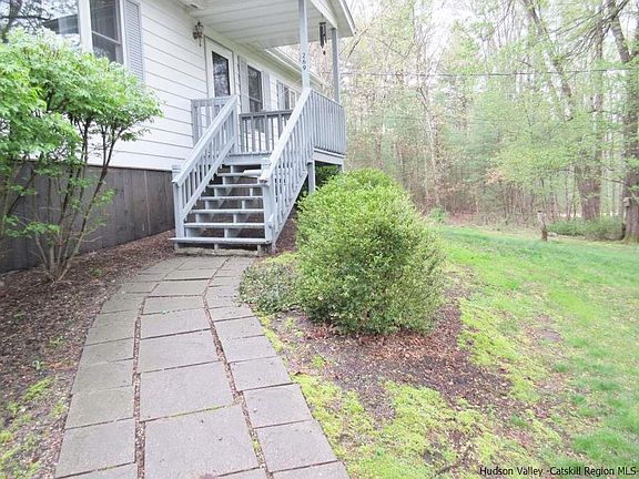 This is a cozy country home on a beautiful (dead-end) country road. Almost 2 acres, neat and well-maintained. Living room with big picture window has a nice built-in bookcase and fireplace w/woodstove insert. Huge kitchen and a large separate dining room surrounded by windows. There is a lot of wildlife to see! Possible third BR (no closet) with wide pine flooring and small woodstove looks out on a lovely small (2nd) deck. It would be perfect for an office, guest room, music room or art studio. There is alot to be desired about this house, not the least of which is TONS OF STORAGE space... There is an attached workshop/shed with electric, under the carport. Also a garage workshop w/toilet & sink. Basement has a bonus room 8.10 x 30, a sauna, utility room (w/ Culligan whole house water filter), another room 8x16.5 with storage shelving! Pool is 2015. Roof 2016. CLOSE TO EVERYTHING... Saugerties Village, Woodstock, Kingston, and Rhinecliff Bridge.