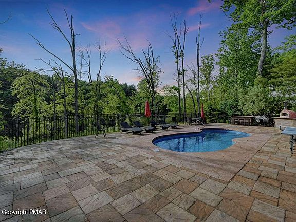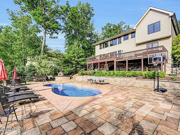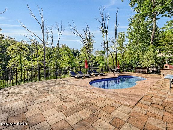 Magnificent Lakefront home with gorgeous modern pool and spa located in the Poconos! One-of-a-kind oasis includes heated pool, hot tub, custom stone wood fired pizza oven, outdoor bbq and grill, ping pong, an area for basketball, a lower-level movie room with pool table, custom bar and stools with direct access to first floor covered patio with custom pavers, stone covered walls with outdoor furniture, exercise bike and TV. Take a kayak or trolling motor boat ride from your your very own enormous backyard! This extraordinary large 3 bedroom and 2 full bathroom home complete with a beautiful wood-burning fireplace offers lakefront views throughout the entire home. SHORT-TERM +AIRBNB APPROVED. MUST SEE ONE OF A KIND LAKEFRONT HOME.