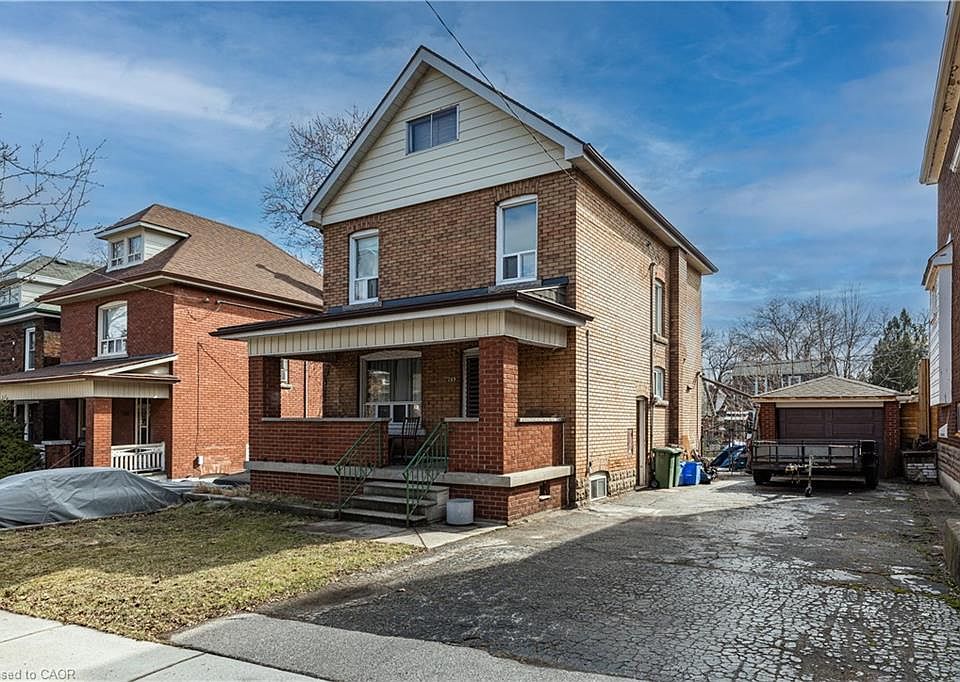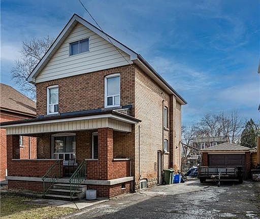 Great value, fabulous Gage Park location! Spacious 3 plus 1 bedroom, 2.5 storey, solid brick home with hardwood and ceramic floors, separate dining room and eat in kitchen. The third level would make a great home office, studio or extra bedroom. This home has updated water service, updated wiring, roof replaced in 2019, loads of private parking and a detached block garage with hydro and concrete floor. There is a lovely front porch and an enclosed rear sunporch opening onto the spacious backyard. There is also a 2nd floor walk out to a rear balcony overlooking the back yard. Excellent opportunity to get into this desirable neighbourhood.
