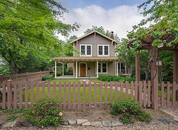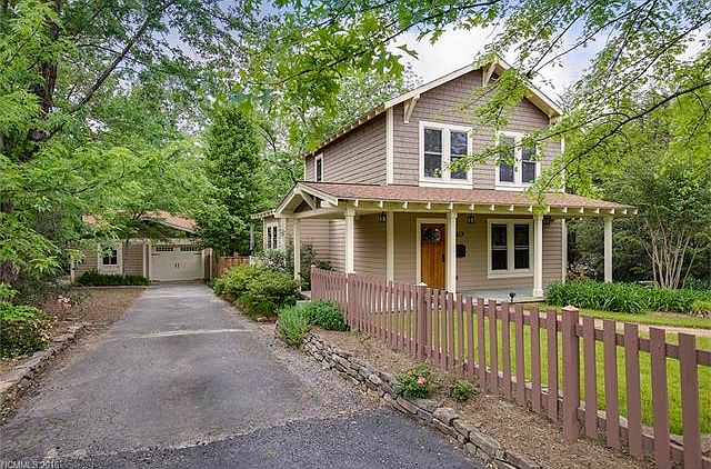One of Brevard's most beloved homes on renowned Franklin Street. A craftsman design originally built in the 1930s, an era in home building that took pride in woodworking and attention to detail. The current owners have carried on the tradition of care for this home and property; evidenced by the mature landscaping and seamless transitions from landscape to home. Oriented around the private back garden is a modern GUEST HOUSE, workshop/garage, and outdoor dining space. VIDEO COMING SOON!