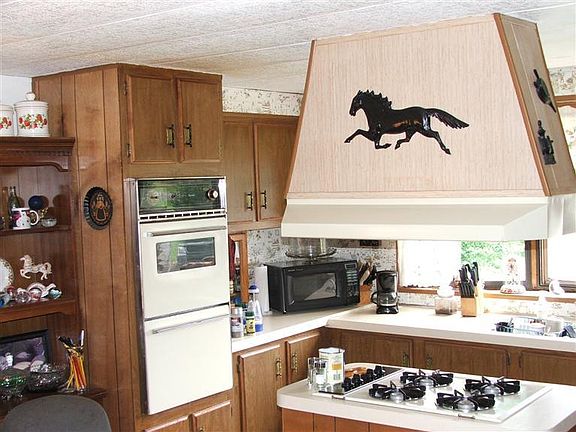 Single wide on 11.5 acres with covered porch, large barn, gazebo and outbuildings. Nice large lawn with trails that travel past garden and along the trout stream on property. Plenty of land and nice barn if you would like a few horses. Property is loaded with apple trees and plenty of deer sign, make your appointment today.